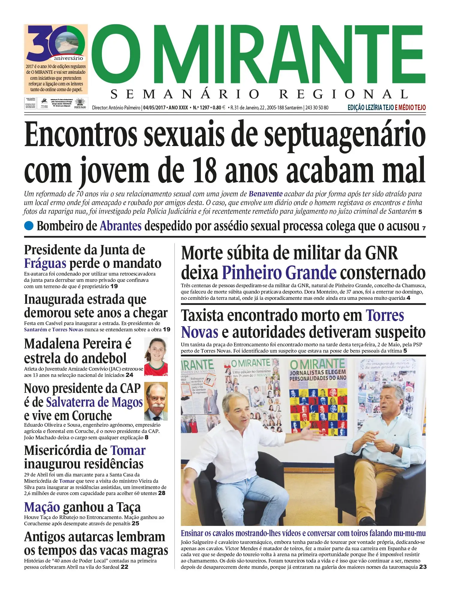 Maio é mês de grandes festas ribatejanas, casos da Semana da Ascensão na Chamusca e da Feira de Maio em Azambuja, dois pontos altos da preservação e promoção das tradições de uma região simbolicamente associada por muitos à trindade campino, toiro e cavalo. Na imagem, momento de um desfile na Feira de Maio em Azambuja, registado em Maio de 2011.