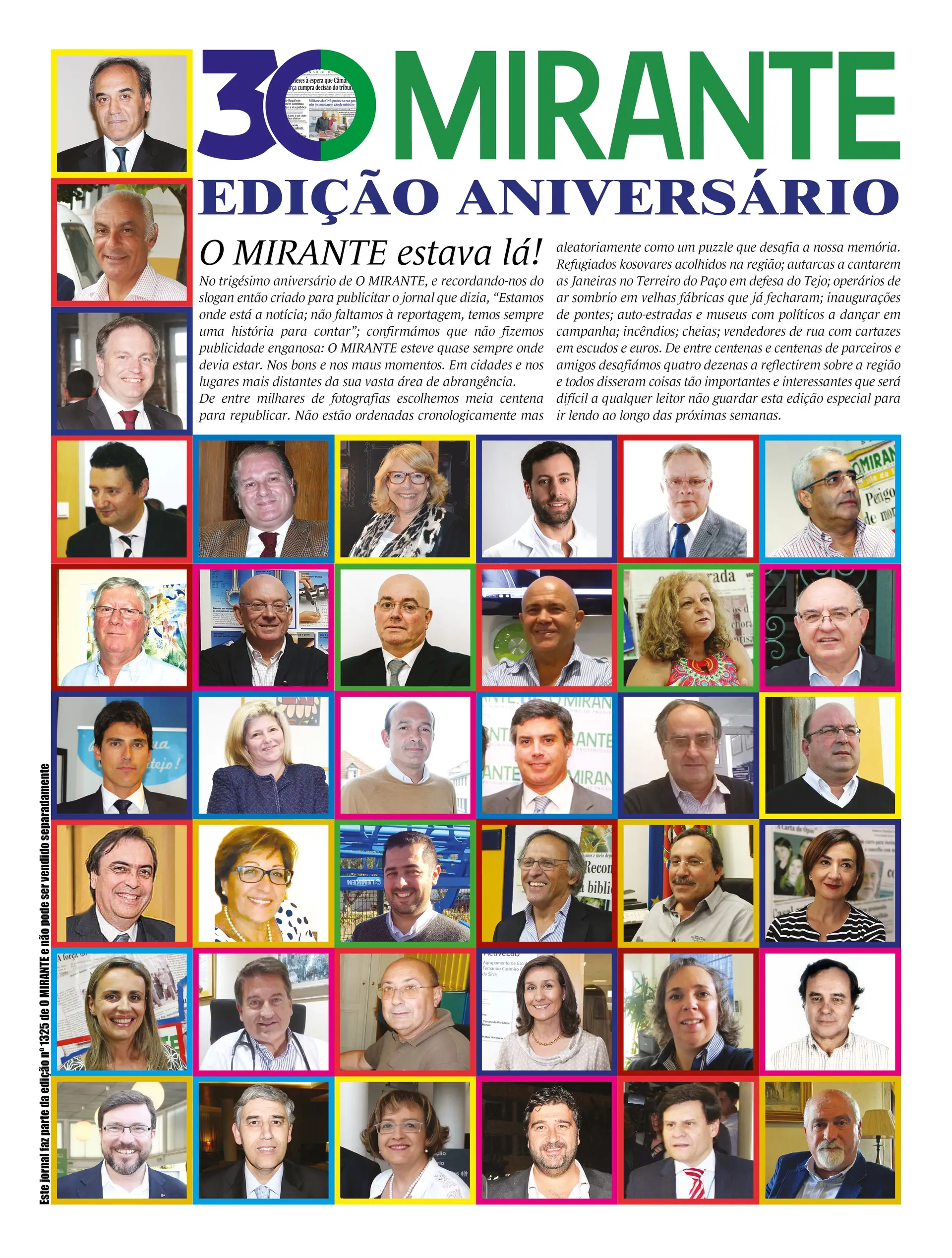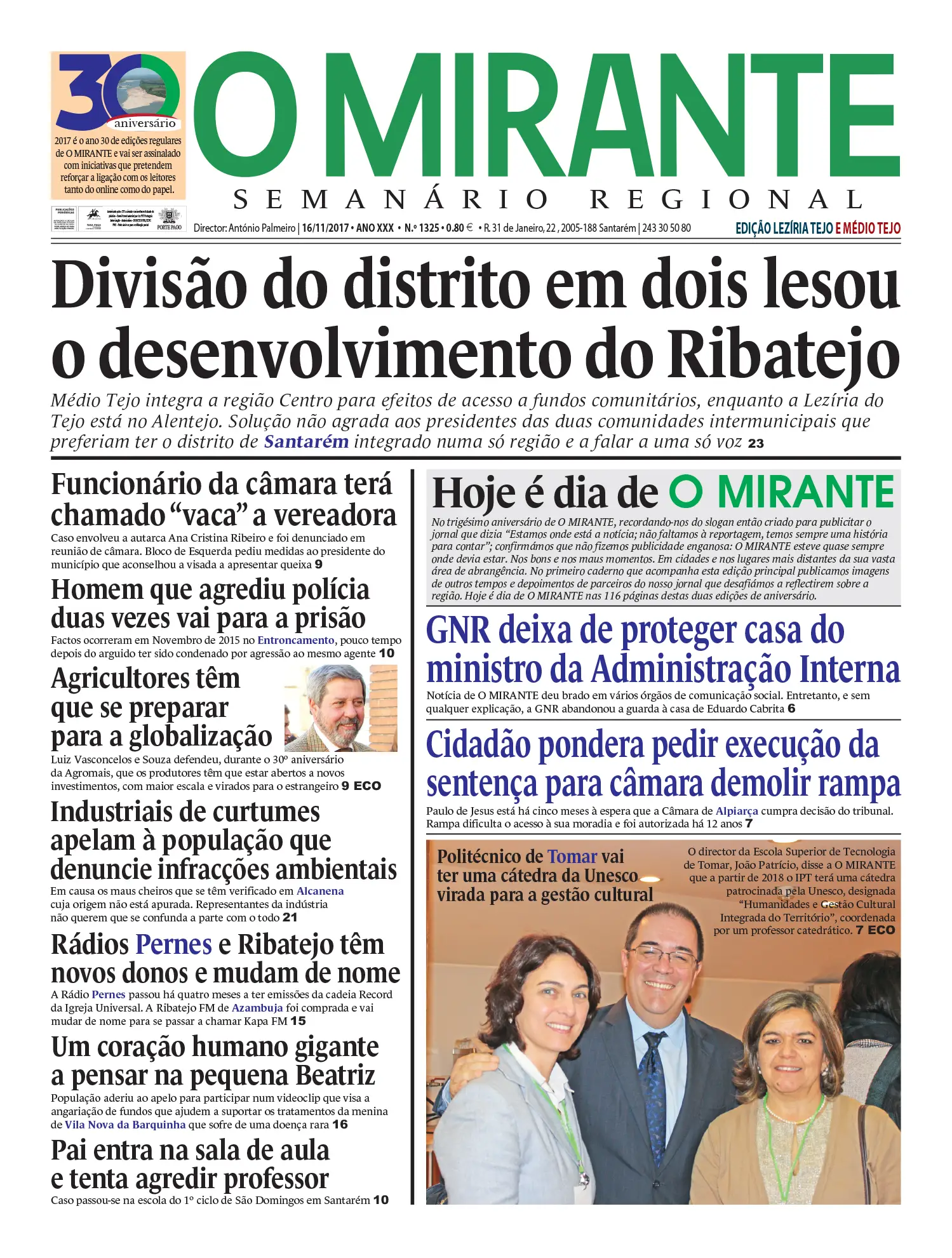 Hoje é dia da festa dos 30. O número da magia, da liderança, da sorte, da proximidade, da vitória, da diferença, da paixão, do desafio, da competitividade, do sucesso, do optimismo e de O MIRANTE. O número da minha vida que são as pessoas. As que têm 30. As que ainda não chegaram aos 30. As que já passaram os 30. As que já dobraram os 30. As que já fizeram 30 e caminham para ter 30 em cada perna. As que vivem com o espírito de 30. As que têm uma alma cheia da singularidade dos 30.